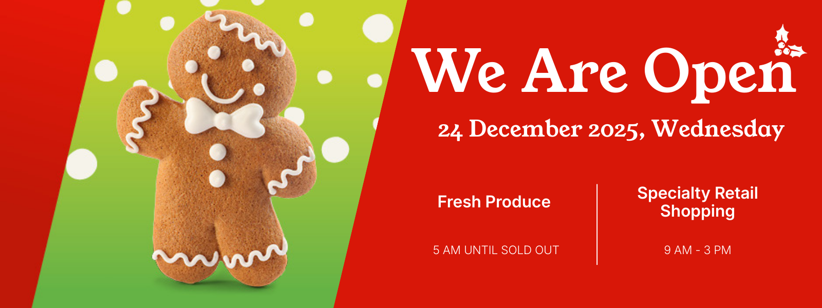 Please note specialty shopping opens at 9am every Market day.