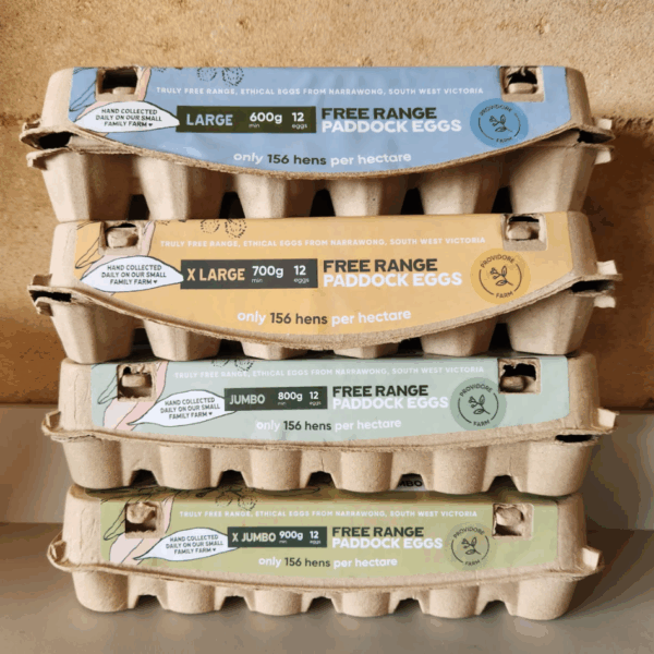 Savour the difference with Providore Pasture Raised Eggs, gathered daily by hand on boutique family farms in the fresh coastal air of Narrawong, south-west Victoria. With just 156 hens per hectare, our truly free-range approach ensures the wellbeing of the flock, resulting in wholesome, flavourful eggs. Available in a full range of sizes from small to jumbo, these eggs reflect a commitment to ethical farming and natural goodness.