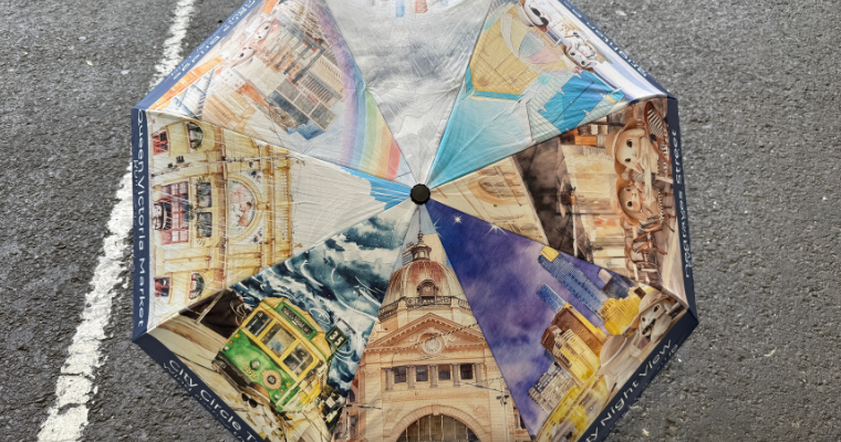 Inspired by Melbourne’s ever-changing weather, this illustrated umbrella features two bunnies journeying across the city, to celebrate companionship, care, and everyday moments – rain, hail, or shine! Pick up yours today at Billabong Crafts.
